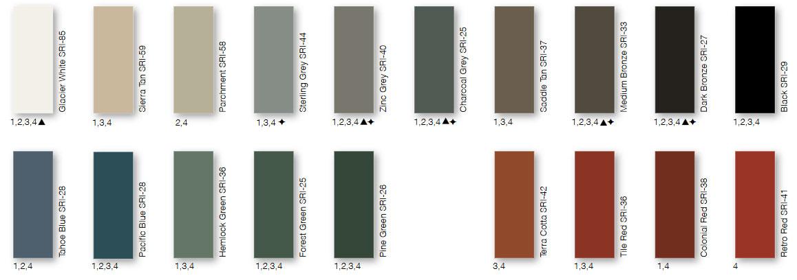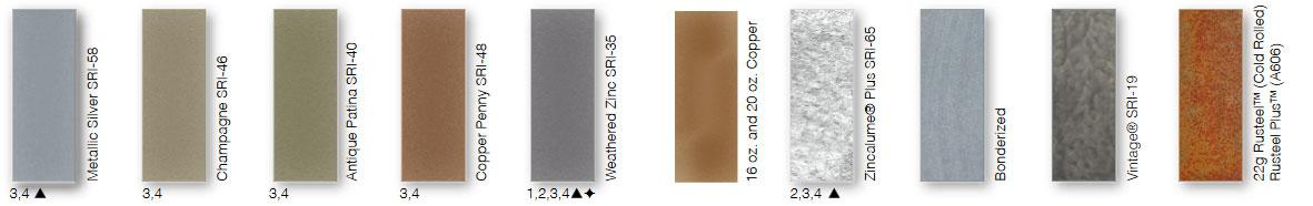 - 22 gauge Kynar 500 Painted Steel .029? (thickness prior to painting G-90 Galvanizing or AZ-50: Select colors, see data sheet for details